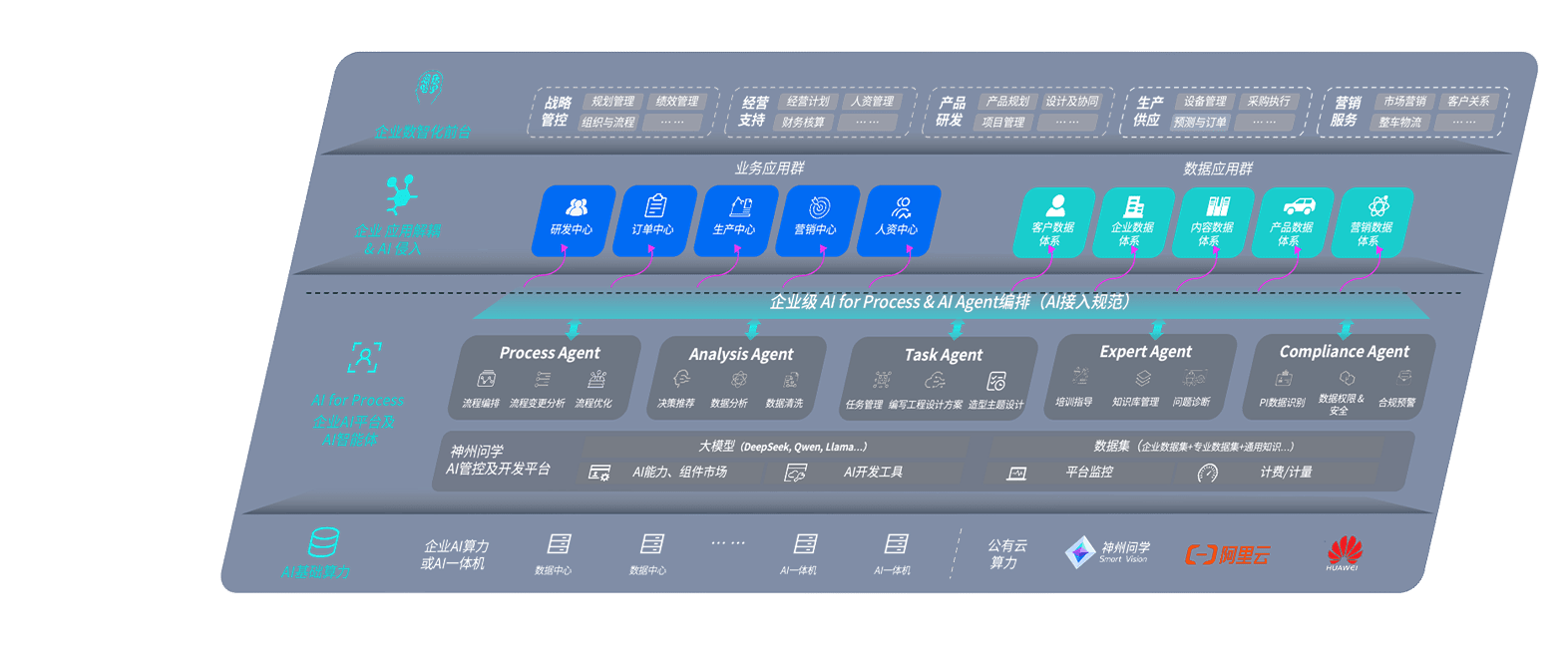 Z6尊龙问学智车解决方案是一套基于AI技术的汽车行业智能化系统,,,覆盖从底层算力到顶层AI应用的全栈方案。。方案由算力层、、、、模型层和应用层组成:算力层,,,方案支持多种一体机配置,,具备云端灵活部署、、、多云适配以及动态优化计算资源的能力;模型层,,,Z6尊龙问学平台版提供了企业级AI应用一站式构建与管理平台,,,,支持基于后训练强化技术的汽车企业专属模型的训练、、评测和运营;应用层,,Z6尊龙问学DeepSeek版提供包括超级员工、、、、智能招采、、、智能营销、、、智能客服、、、、AI for BI等一系列解决方案,,,可助力汽车行业实现数字化转型,,让管理更智能、、、响应更敏捷。。。